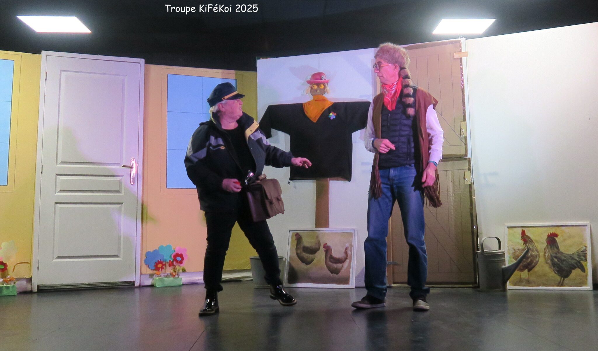 Croquette regarde les lettres et semble comprendre quelque chose. Mathurin surgit. Fin de la scène de cette Pièce de théâtre western.