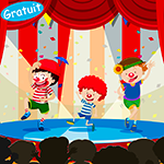 Une saynète de trois pages très drôle où les trois personnages sont les clowns typiques du cirque : le clown rouge (ou Auguste), le clown blanc et le Monsieur Loyal. Une parfaite introduction au jeu expressif et burlesque.
